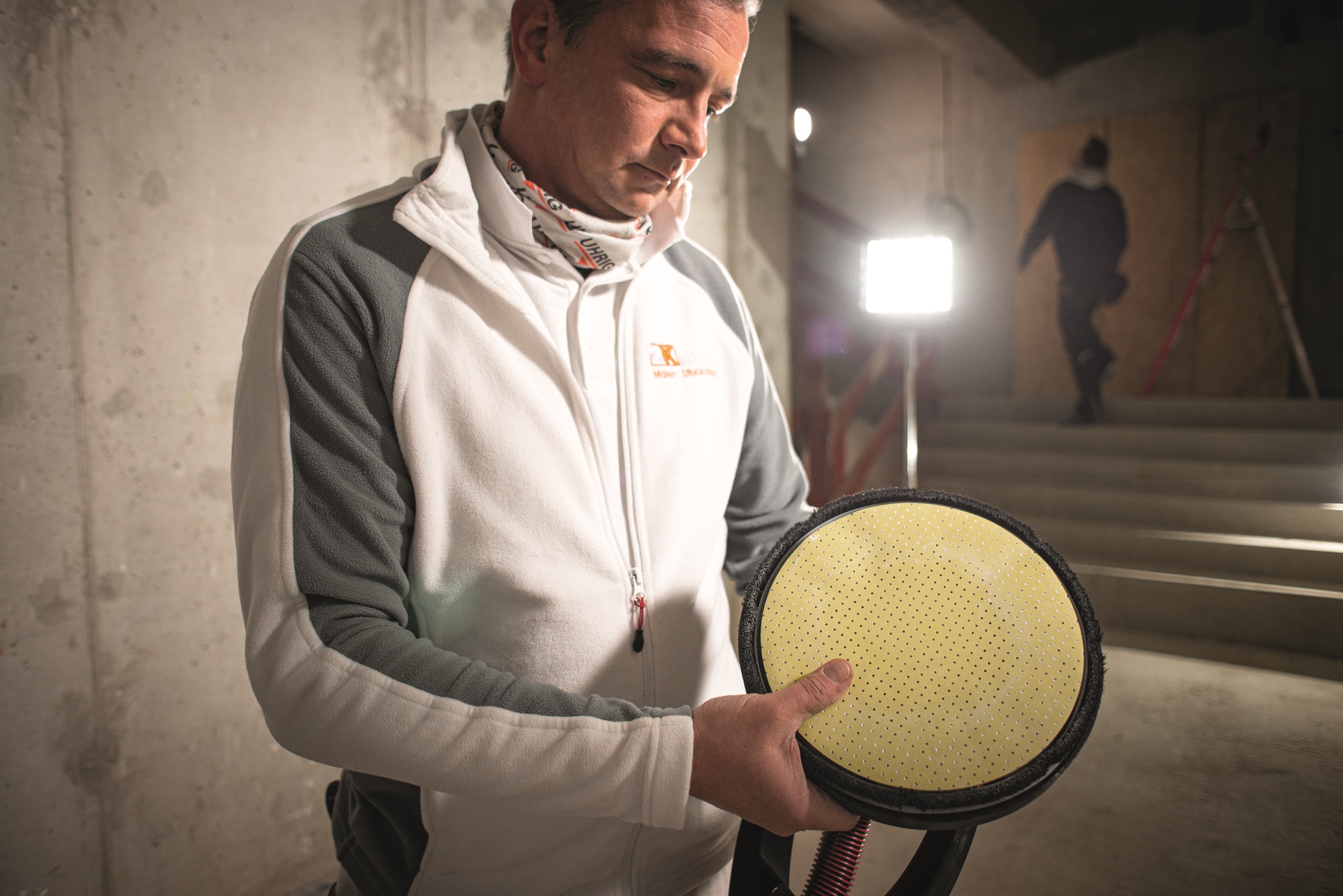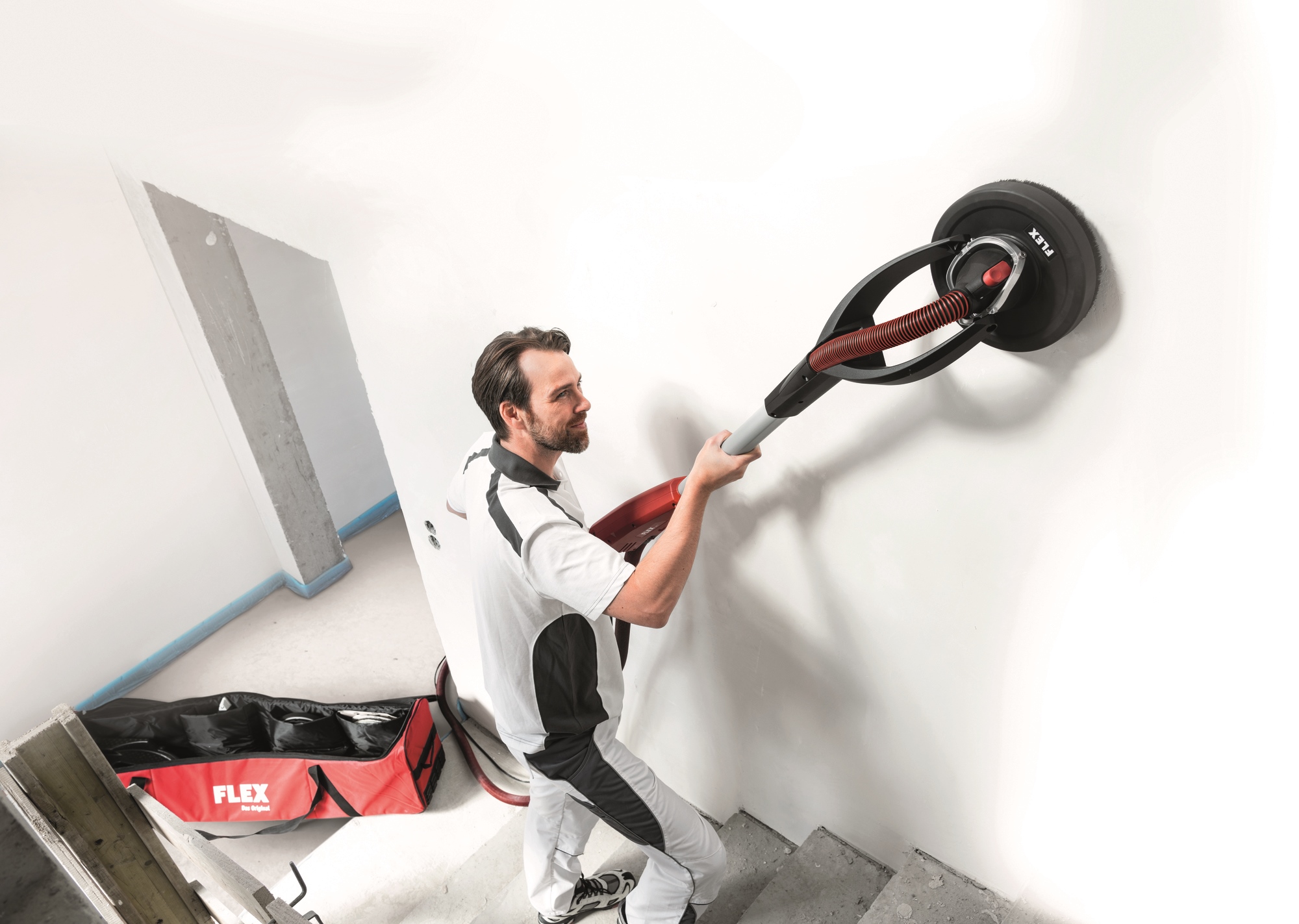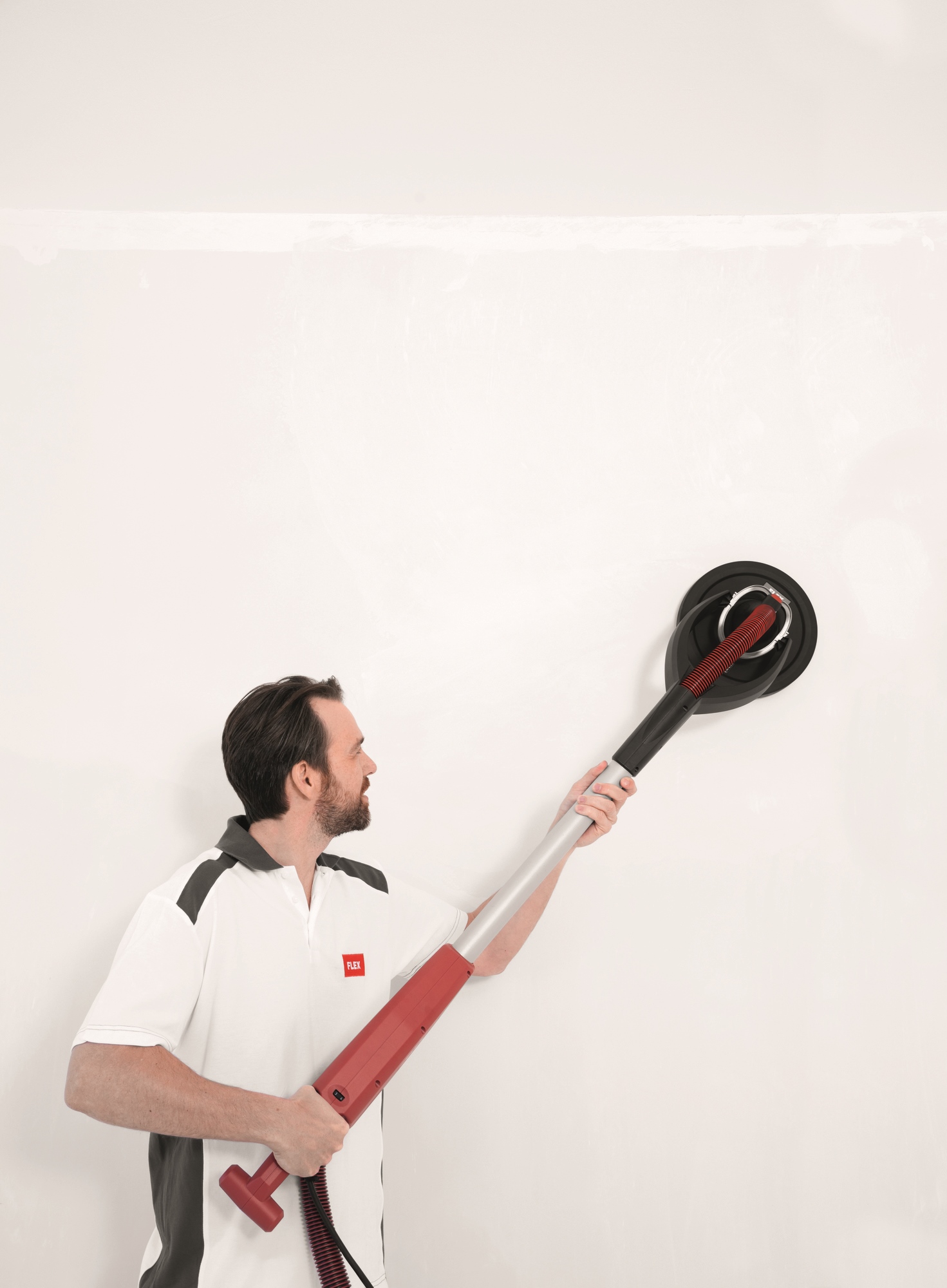 Kardanisch gelagerter Schleifkopf sorgt für hohe Flexibilität und optimale Anpassung beim Schleifen an Wänden und Decken.