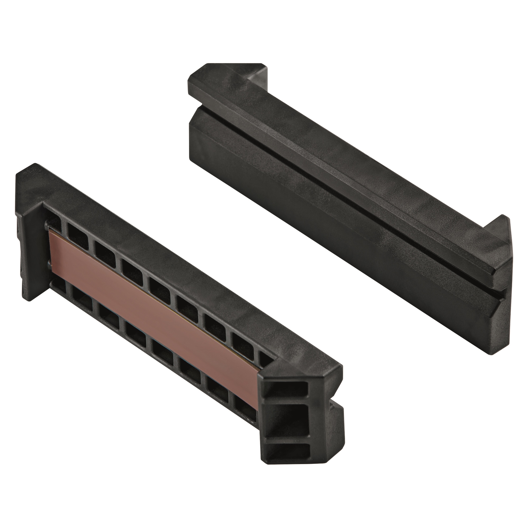Kunststoffschonbacken mit Magnet, passend für SBG 4908 und 4910, mit Prisma, zum sicheren Spannen von Materialien mit empfindlichen Oberflächen. Durch den Einsatz der Schonbacken, auf der SBG 4910 wird der Schnittabstand auf 15 mm reduziert.