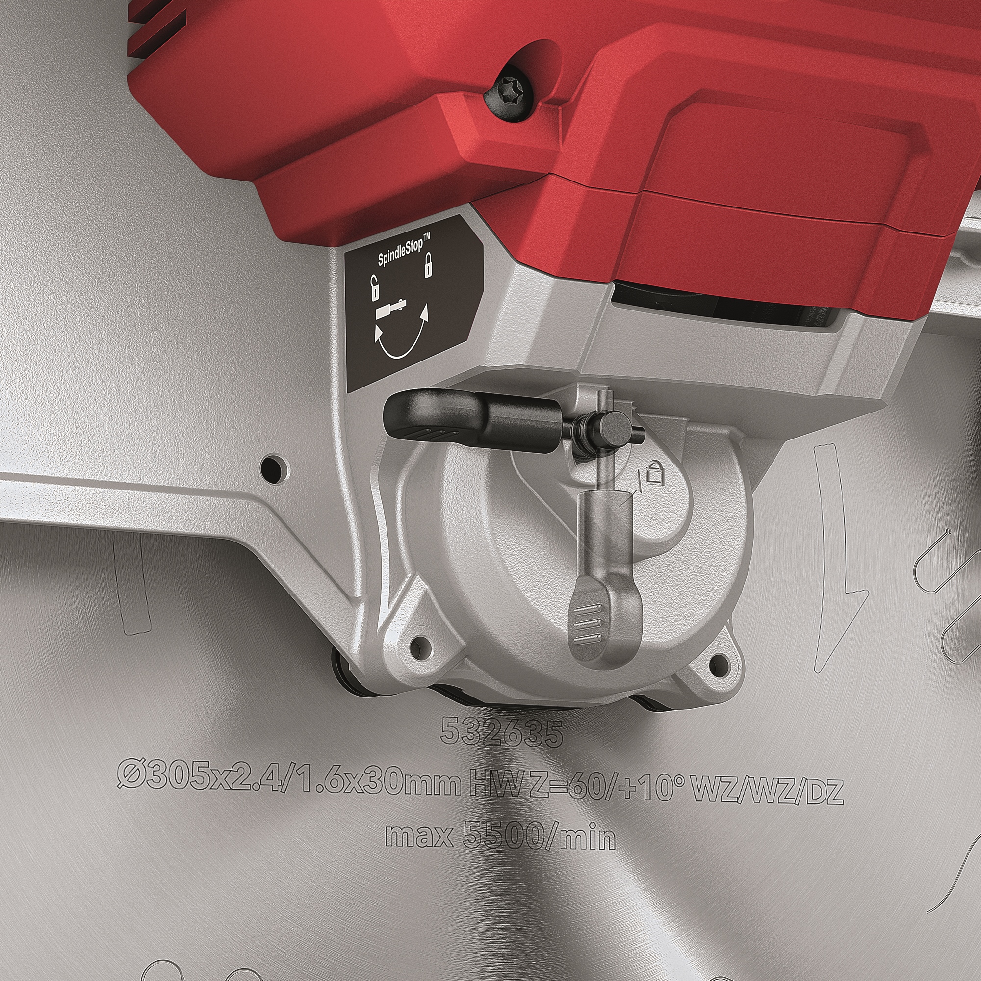 Spindelarretierung: für schnellen Sägeblattwechsel