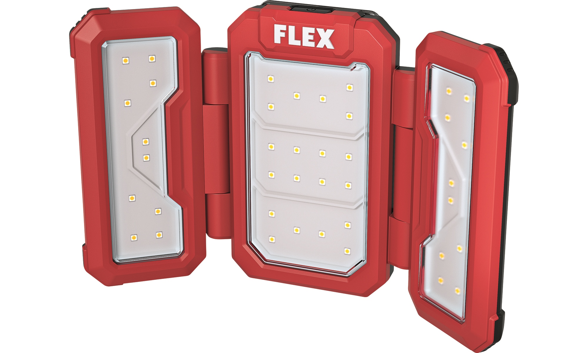 Die drei Panels der Leuchte mit zwei Drehachsen ermöglichen eine freie Positionierung des Lichtwinkels. Somit kann das Licht in eine Richtung fokussiert oder auf Flächenausleuchtung umgestellt werden