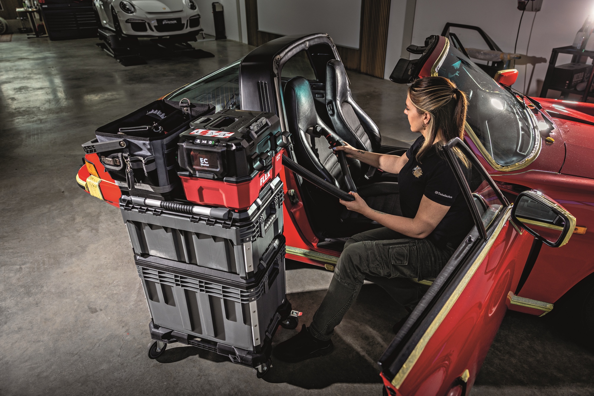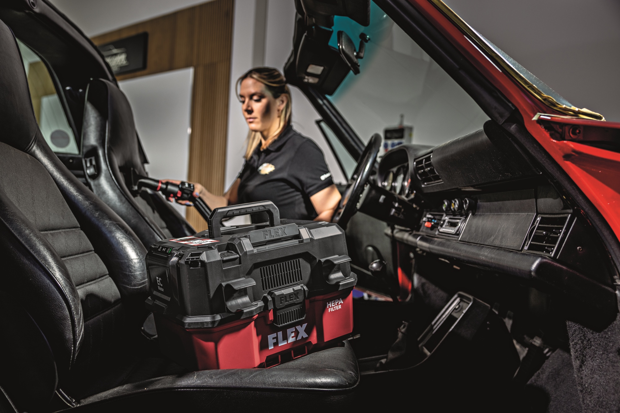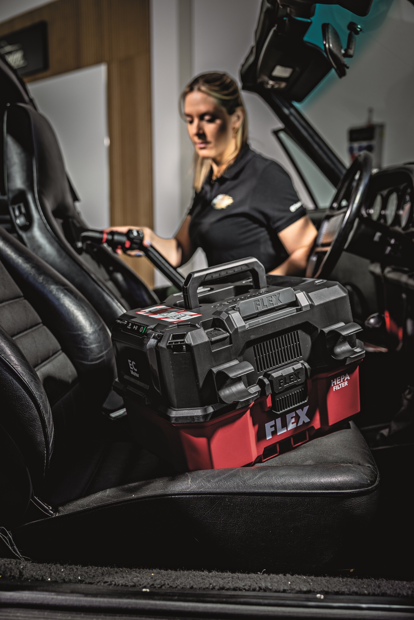 Der Akku-Sauger ist kompatibel mit dem FLEX Aufbewahrungs- und Transportsystem STACK PACK. Damit lässt er sich mit weiteren Boxen für Werkzeuge und Zubehör problemlos zur Baustelle transportieren. Ineinandergreifende Schnellverbindungsverschlüsse bieten schnelle, flexible und mühelose Verbindung der Bestandteile