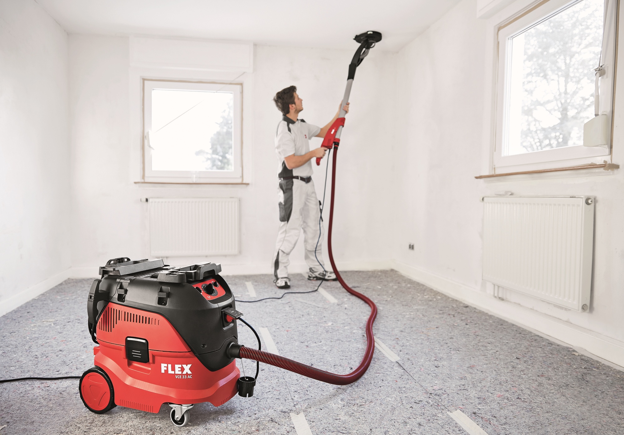 Die Volumenstromregelung über den Drehschalter reduziert ein mögliches Vakuum auf der Oberfläche bei Lackzwischen- und Feinschliff