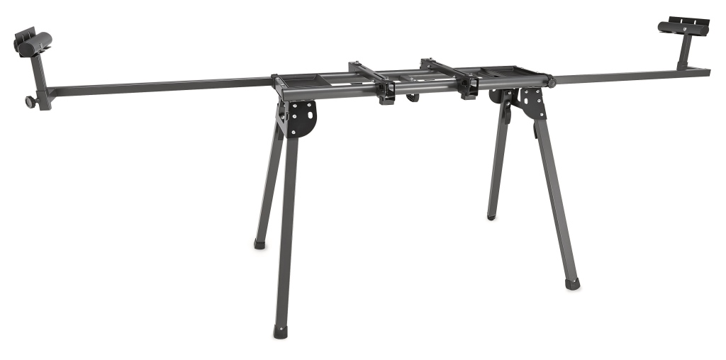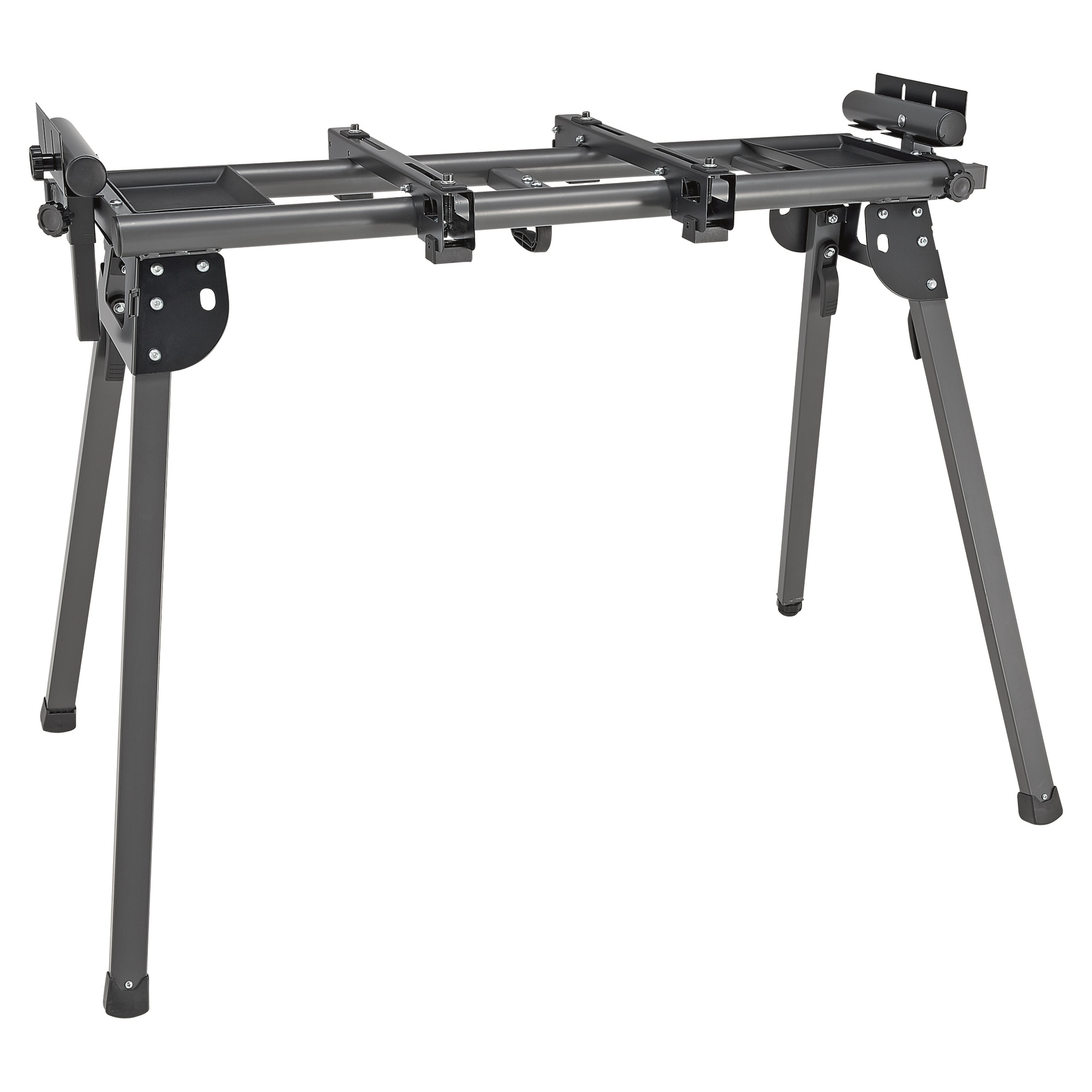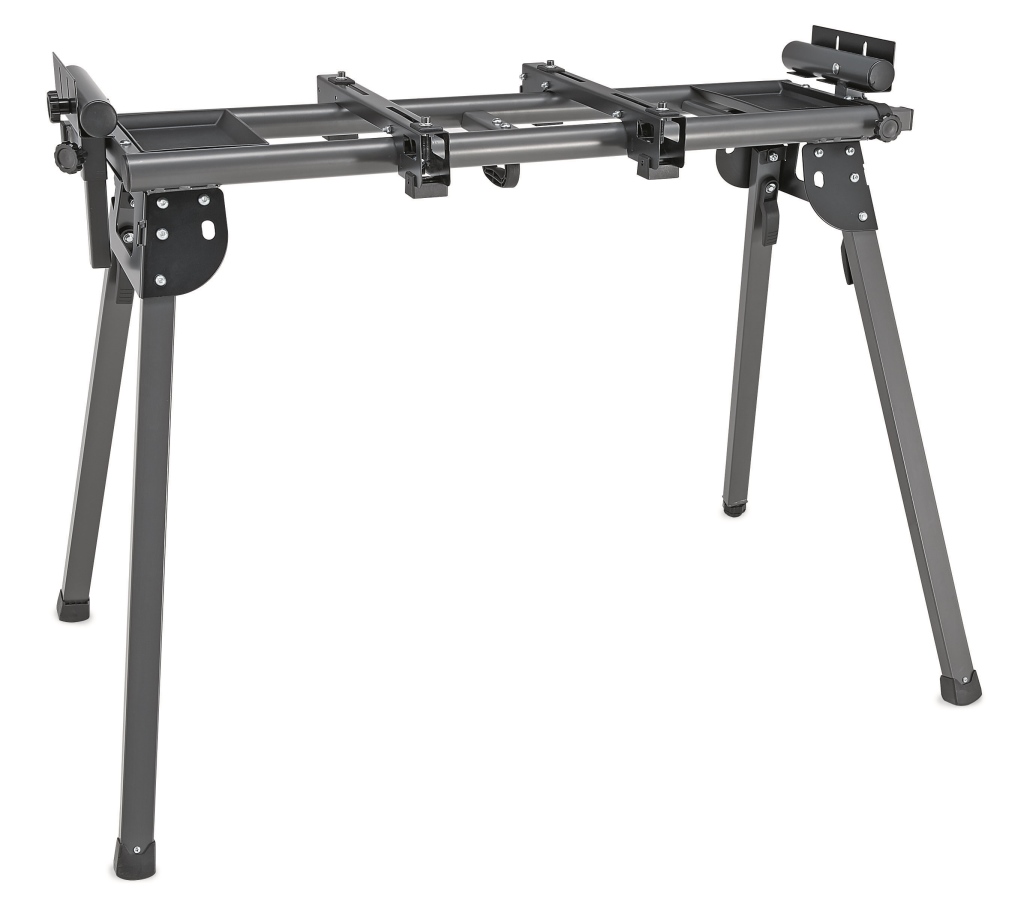 Universal Untergestell für Kapp-Zugsäge. Beidseitig ausziehbar von 1170-2600 mm, mit einem justierbaren Ausgleichsfuß. Höhenverstellbare Werkstückauflage mit Sägeanschlag, Werkzeugablagen links/rechts und Montageplatten mit Schnellspanner. Arbeitshöhe 930-1000 mm und einer Tragkraft von 400 kg. Für den Transport werkzeuglos zusammenklappbar, mit Tragegriff.