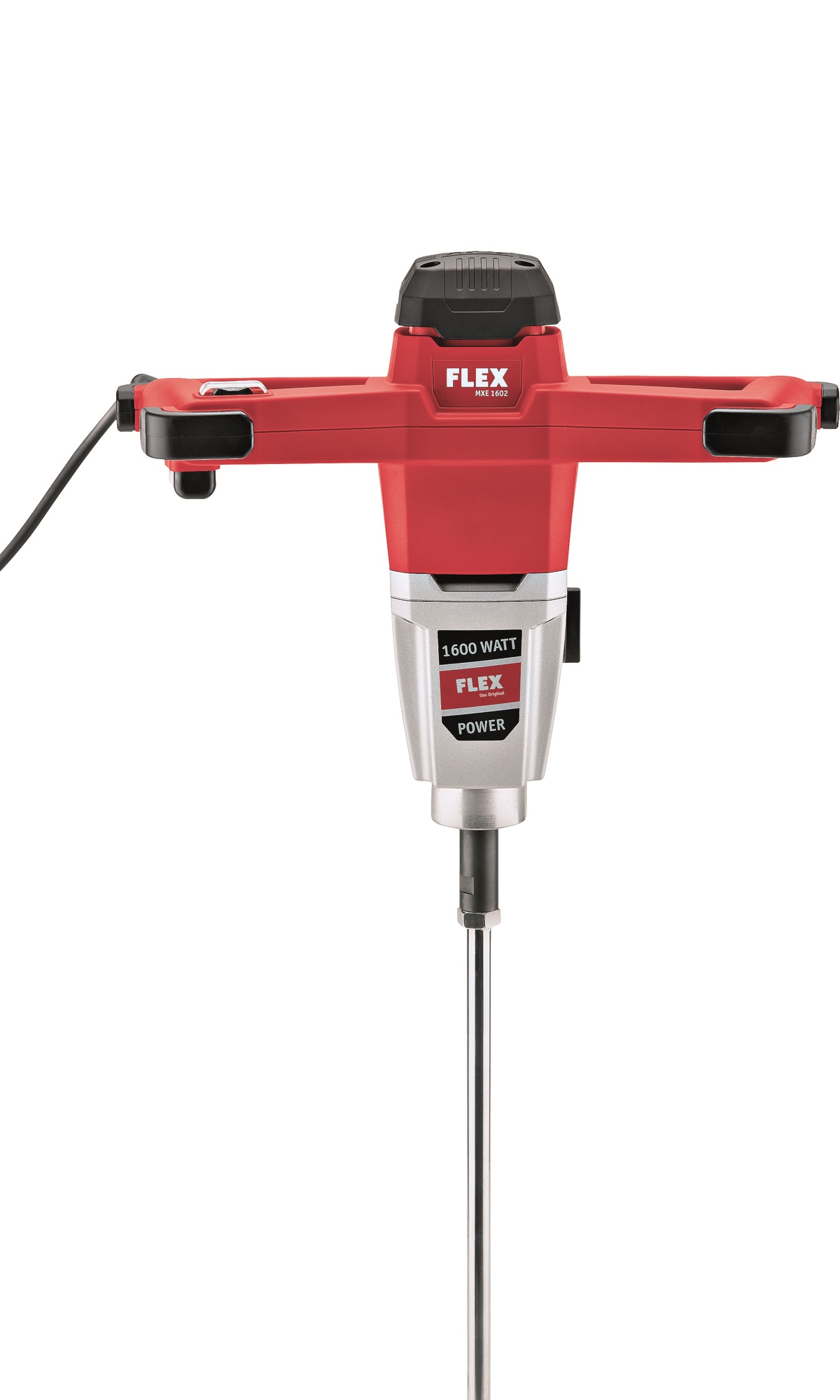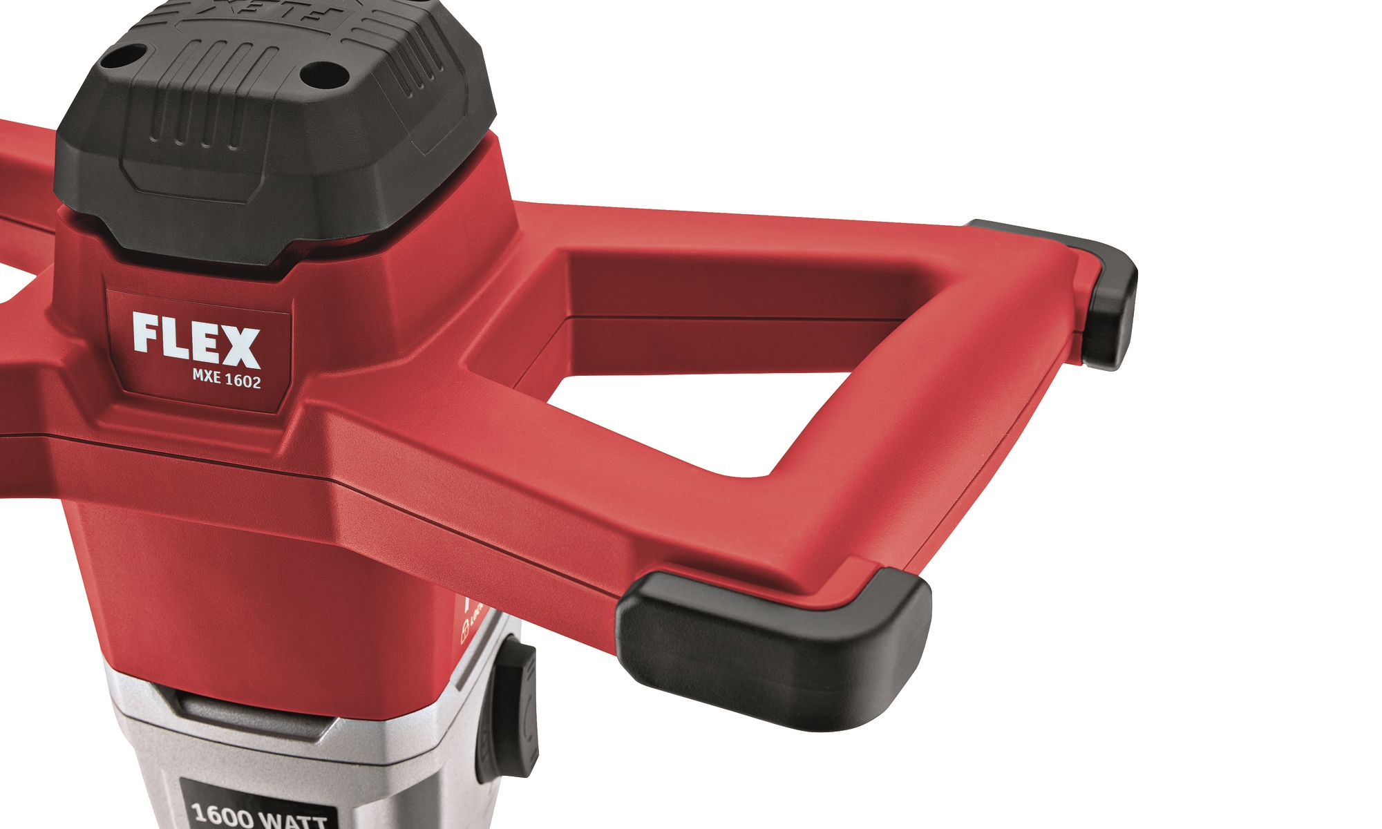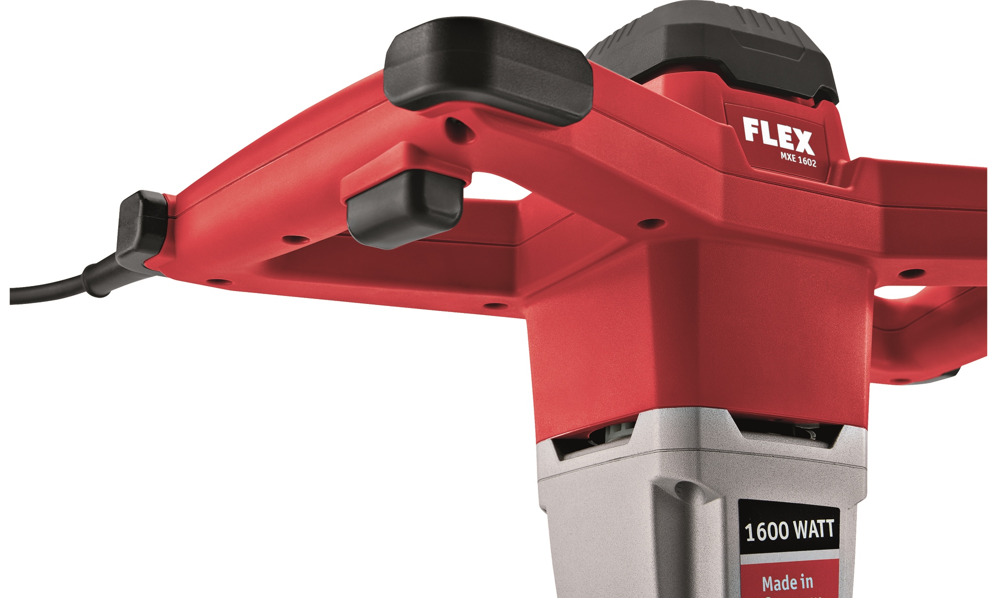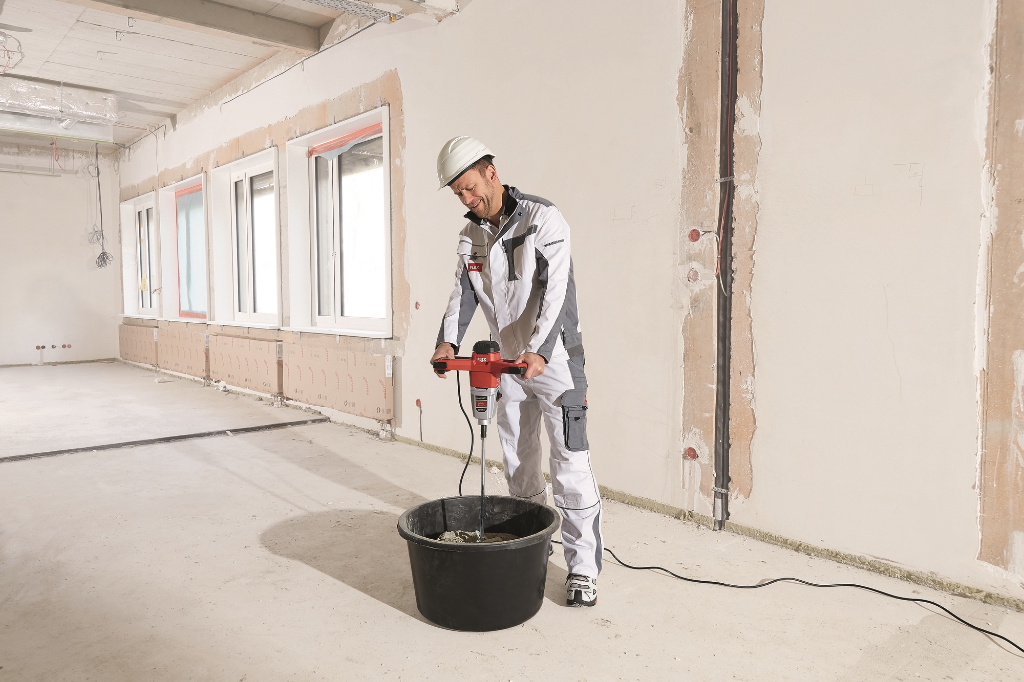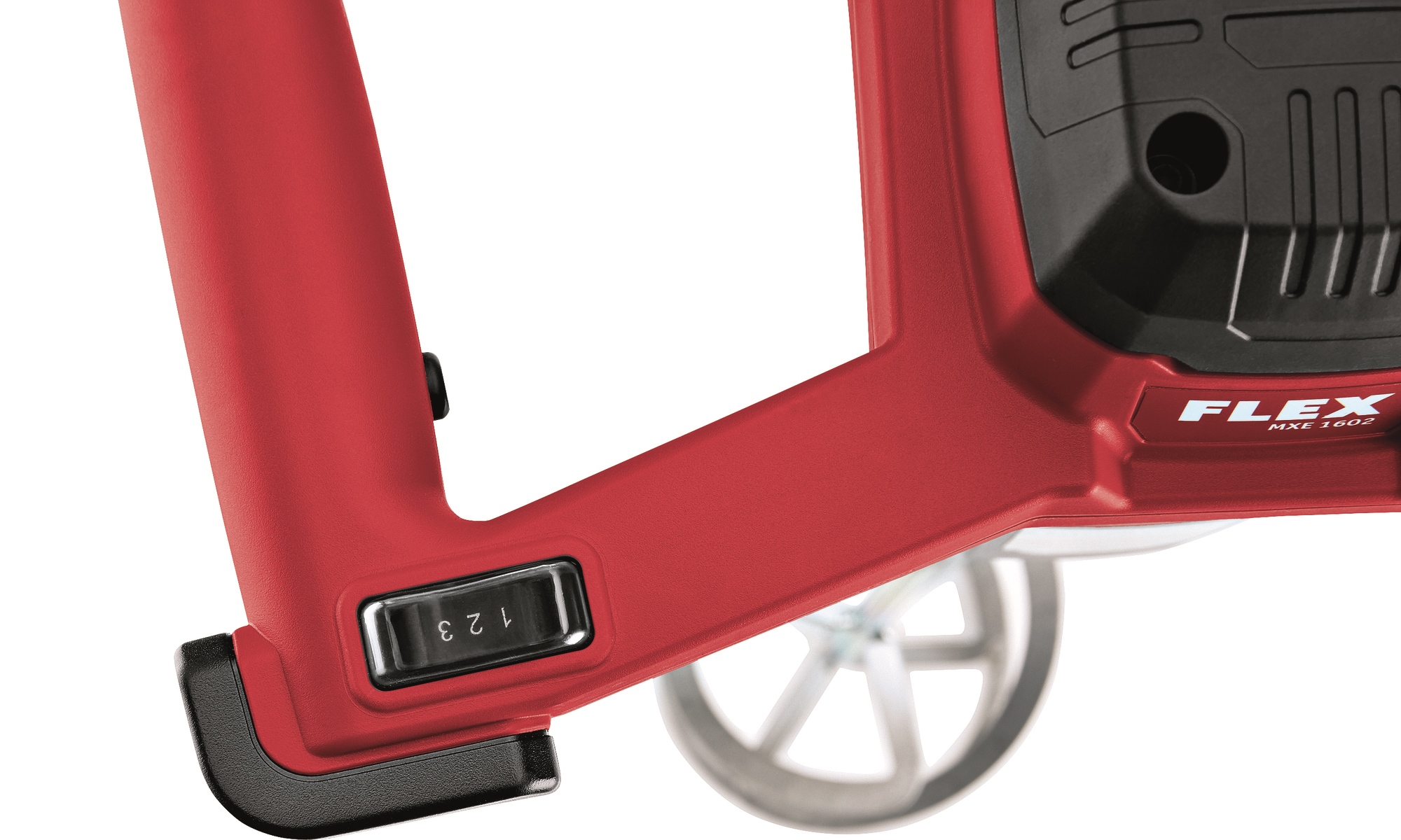 Variateur à molette pour le réglage de la vitesse de mélange optimale. Niveau d’engrenage 1 : pour les matériaux de construction hautement visqueux, niveau d’engrenage 2 : pour les matériaux de construction moyennement à faiblement visqueux