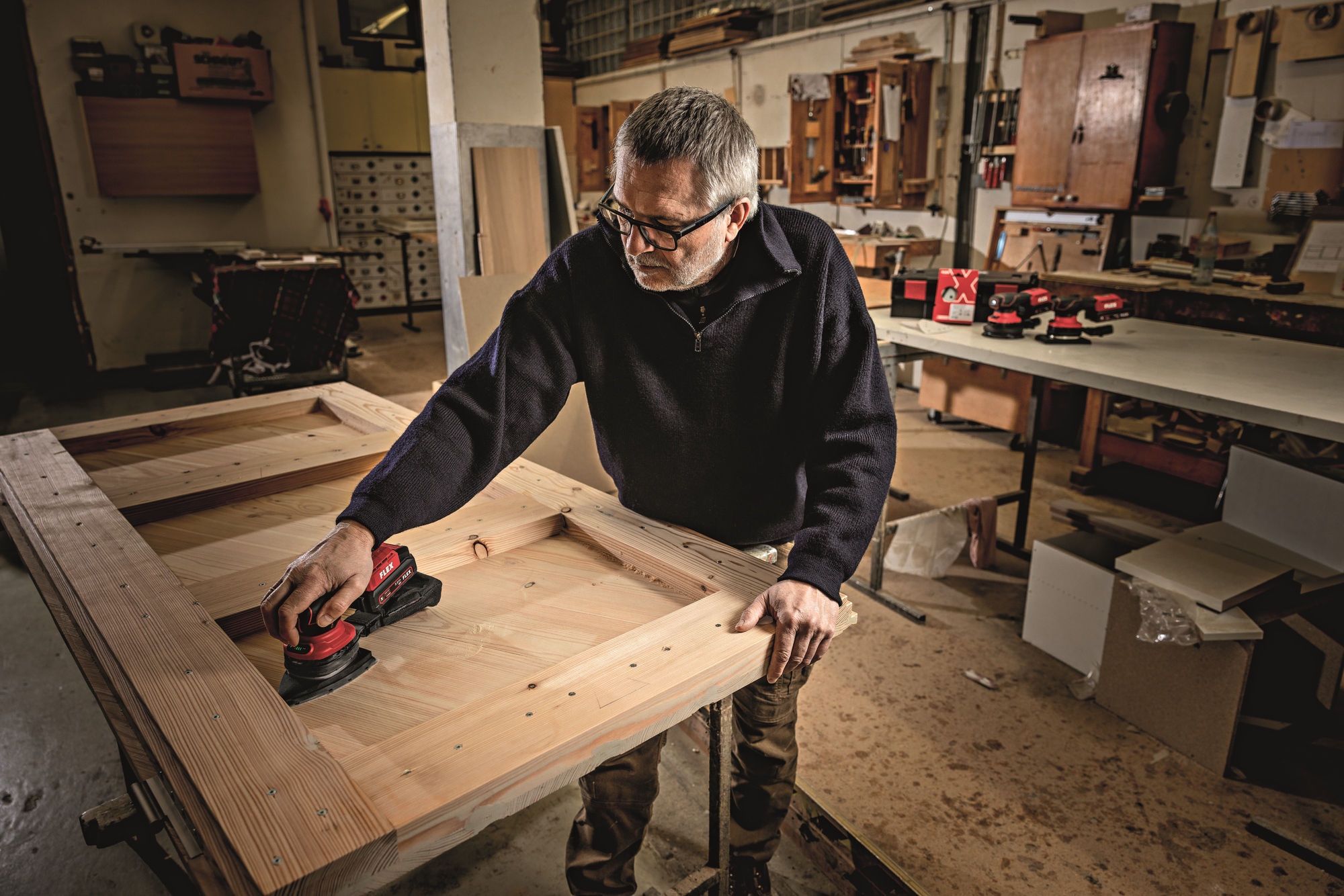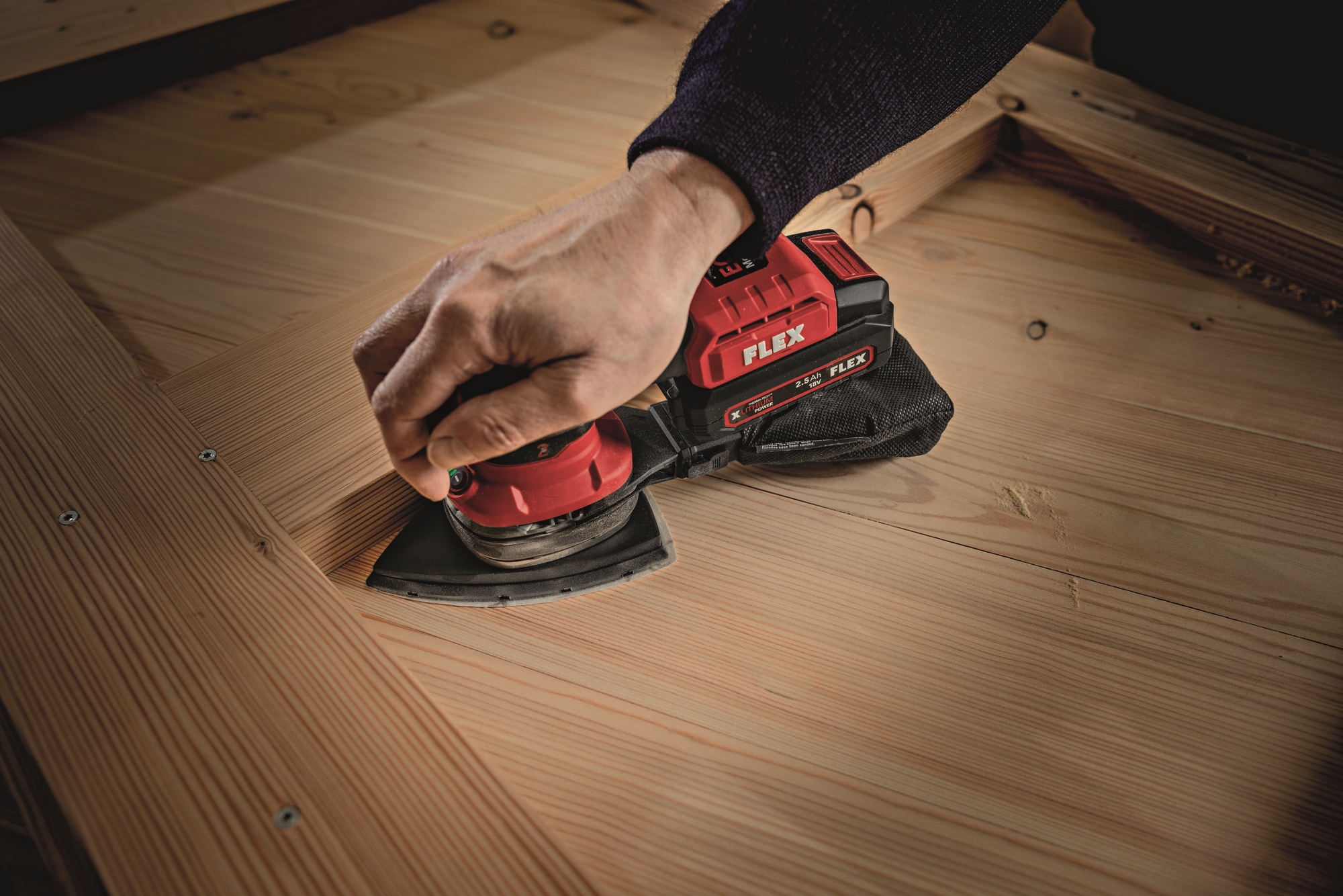 Ponceuse delta à une main légère, compacte, particulièrement ergonomique et à faibles vibrations grâce à un équilibrage spécial pour un travail sans fatigue ménageant les articulations