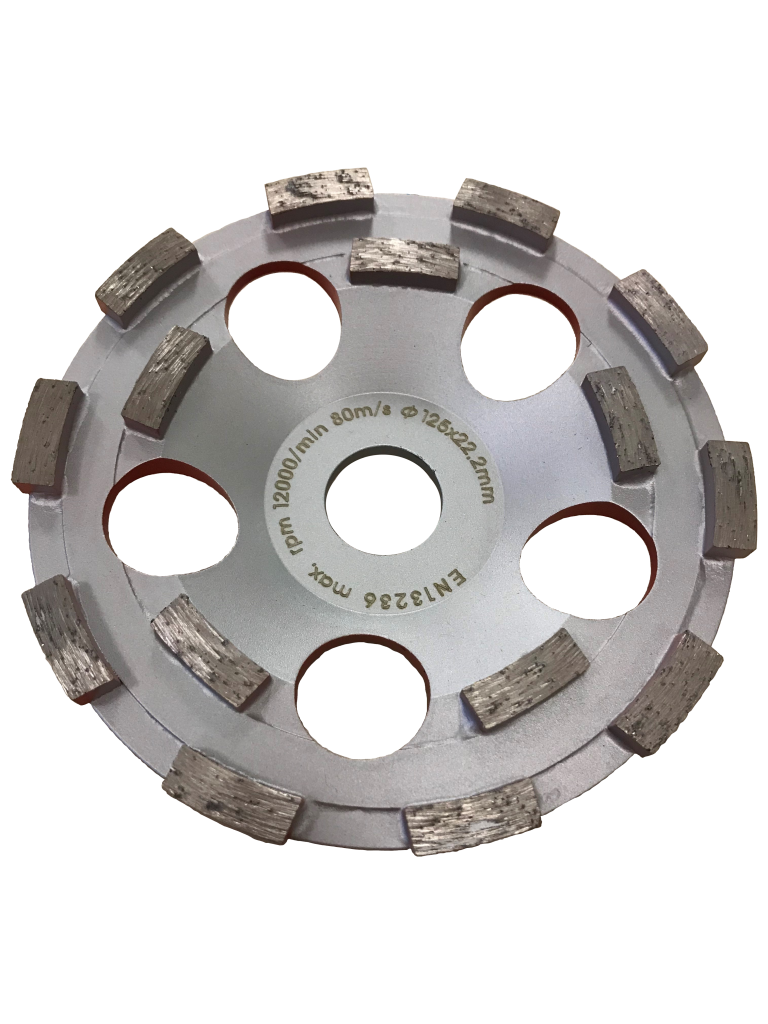Schleifteller mit sehr hoher Standzeit durch vertikal angeordnete Diamantsegmente. Geeignet zum Abschleifen von Betonteilen, Anschleifen von verwittertem Altbeton, hartem Zementputz, zum Entfernen von Schalungsübergängen und Betonläufern, ausgehärteten Epoxidharzbeschichtungen und der Sinterschicht an Betonteilen. Optimale Untergrundvorbereitung für eine weitere Beschichtung.