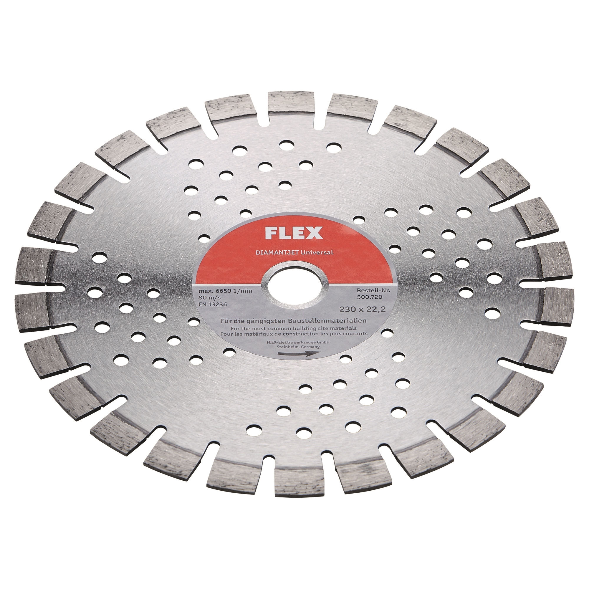 Disco da taglio universale per i più comuni materiali da cantiere come calcestruzzo B45 (calcestruzzo duro), granito morbido, mattoni e piastrelle.