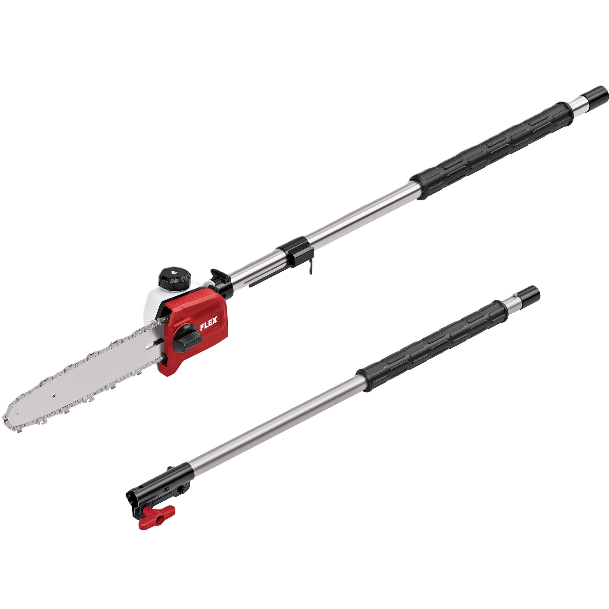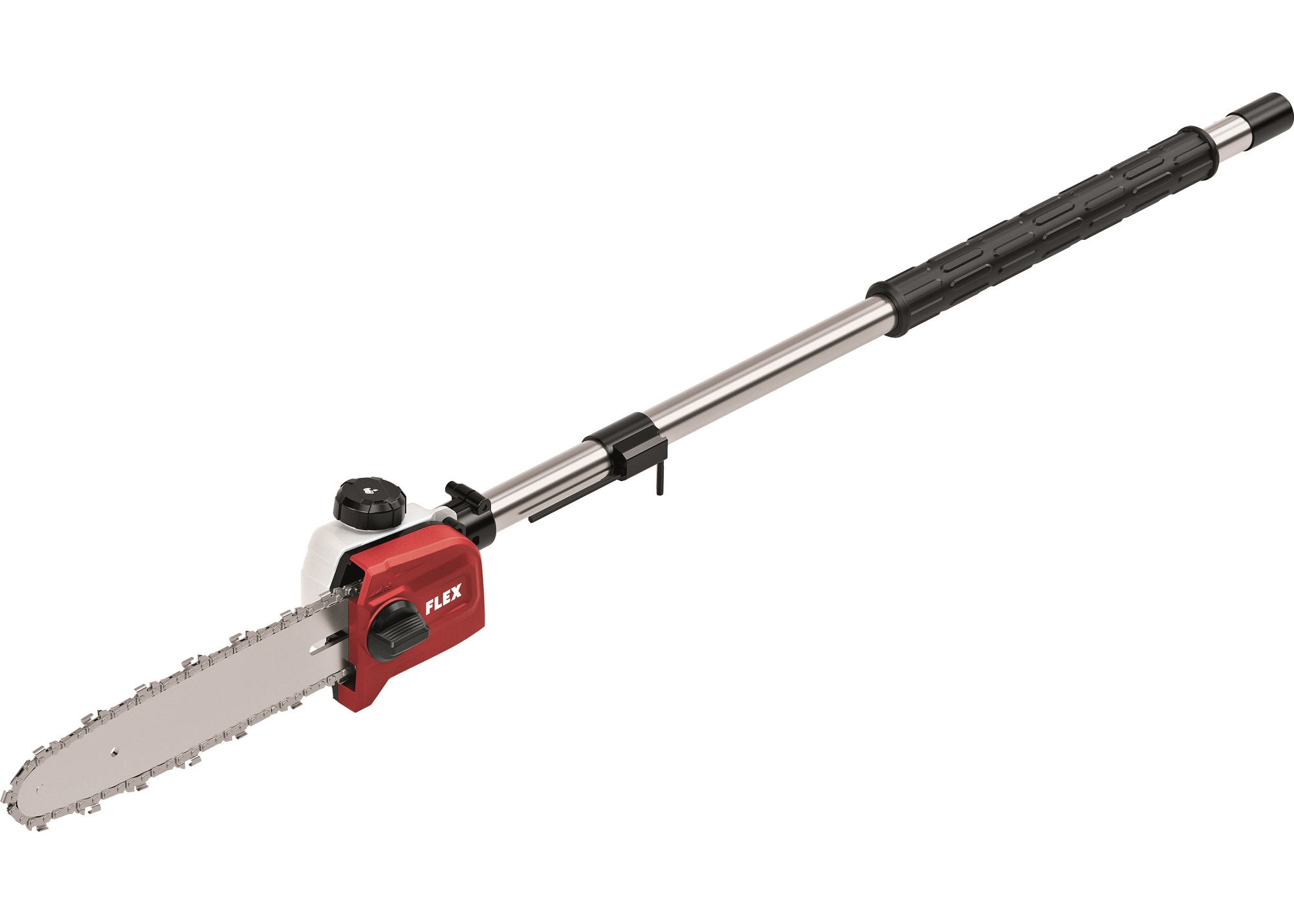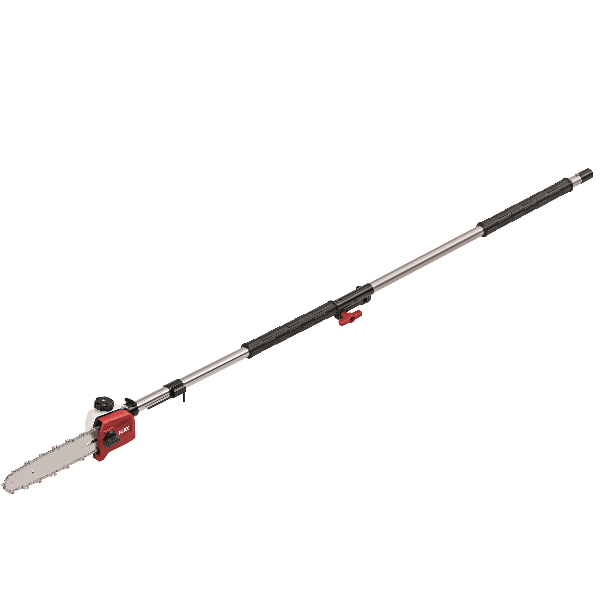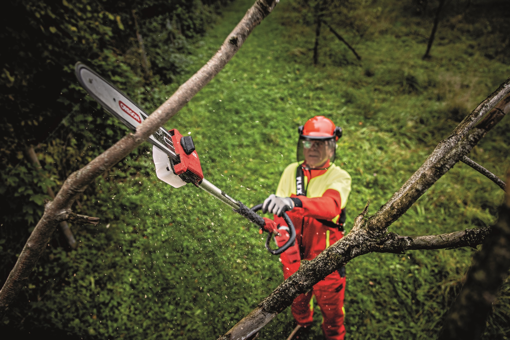 Il potatore ad asta, compresa la prolunga da 80 cm per l'unità di base a batteria o il tagliaerba a batteria, consente di tagliare rami alti senza bisogno di una scala. Attacco senza attrezzi