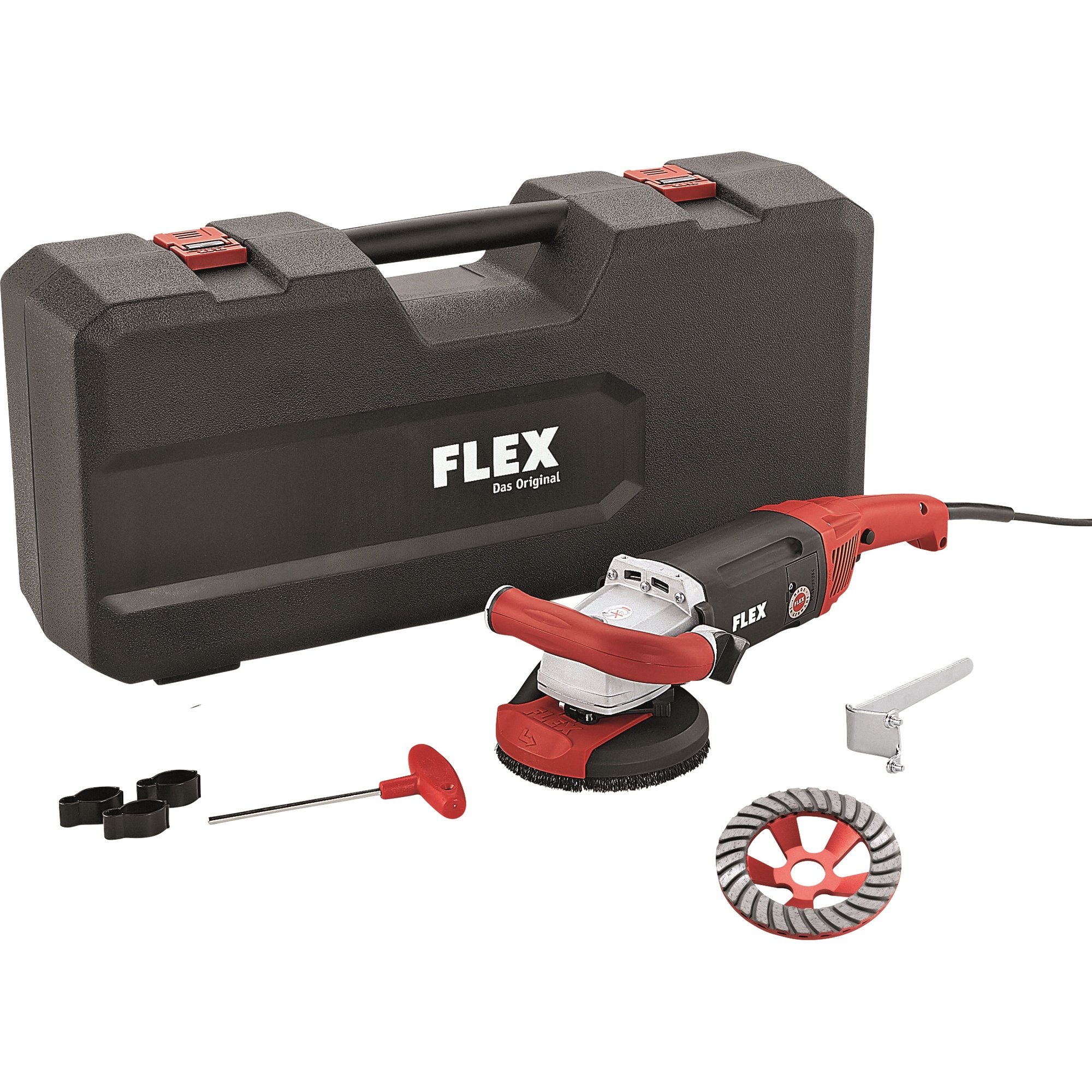 {+Elettronica a microprocessore: con mantenimento costante della velocità di rotazione, avvio graduale, protezione da sovraccarichi e monitoraggio della temperatura-}{-Motore affidabile ad alte prestazioni da 1800 watt con riserve di potenza sufficienti-}{-Aspirazione della polvere: protegge dalla polvere abrasiva, riduce l'usura del disco, mantiene aperti i pori del calcestruzzo per il nuovo rivestimento-}{-Blocco mandrino incassato contro l'uso involontario-}{-Con impugnatura ergonomica regolabile in continuo, che smorza le vibrazioni, per una manipolazione e una guida ottimali della macchina-}{-Coperchio di protezione: con segmento girevole per levigare fino alla parete e regolabile in altezza per adattarsi all'altezza del disco e garantire un'aspirazione ottimale della polvere - {-Adattatore per sistema FLEX Clip incluso nella fornitura -} {-Con 125 mm per la lavorazione di superfici di piccole e medie dimensioni di pavimenti, pareti e soffitti-}{-Platorello Turbo-Jet con capacità di asportazione ottimale. La moltitudine di segmenti diamantati consente un funzionamento notevolmente più silenzioso e un risultato di levigatura più estetico. Ideale per la levigatura di superfici su supporti minerali.+}{cr}{cr}Mindestens ein schliessendes -} - Zeichen fehlt.