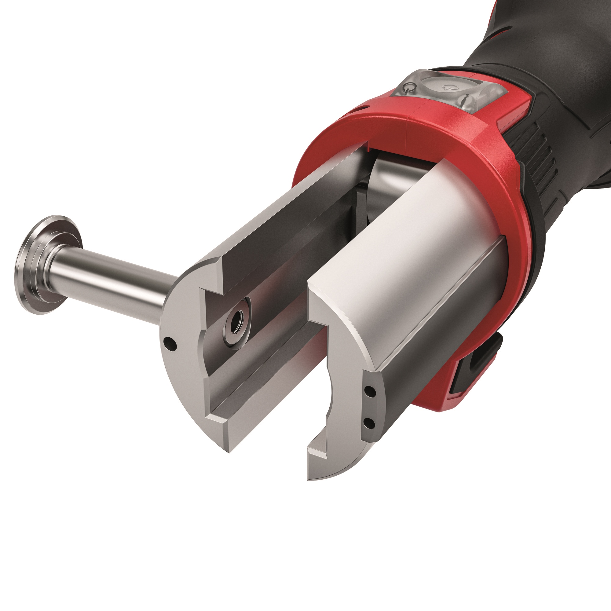 Compatibile con tutti i più comuni sistemi di pressfitting. Campo di crimpatura massimo per plastica 110 mm e metallo 54 mm.