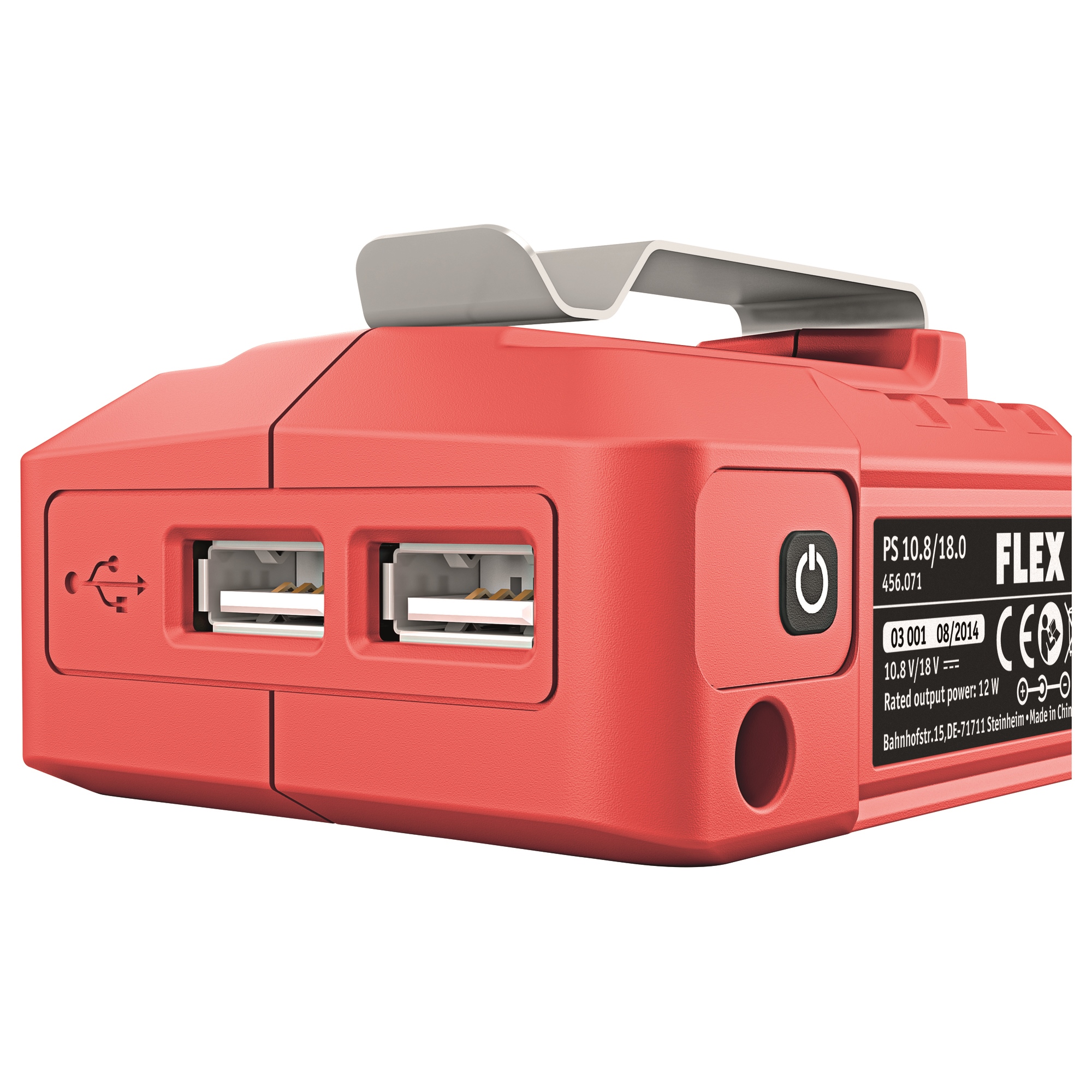 Adattatore a batterie da 18 o 12 V utilizzabile come caricatore USB per smartphone o per riscaldare la giacca termica. L'adattatore è dotato di 2 porte USB, modalità di risparmio energia e clip per cintura. Corrente di carica 1,5 A/12 V.