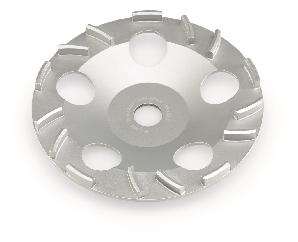 Testa di levigatura per levigare parti in calcestruzzo, calcestruzzo disgregato, intonaco cementizio duro,rimuovere cordoli di armature e bave dal calcestruzzo, rivestimenti induriti in resina epossidica e strati sinterizzati da parti in calcestruzzo. Elevate prestazioni di levigatura e notevole durata grazie alla struttura innovativa dei segmenti.