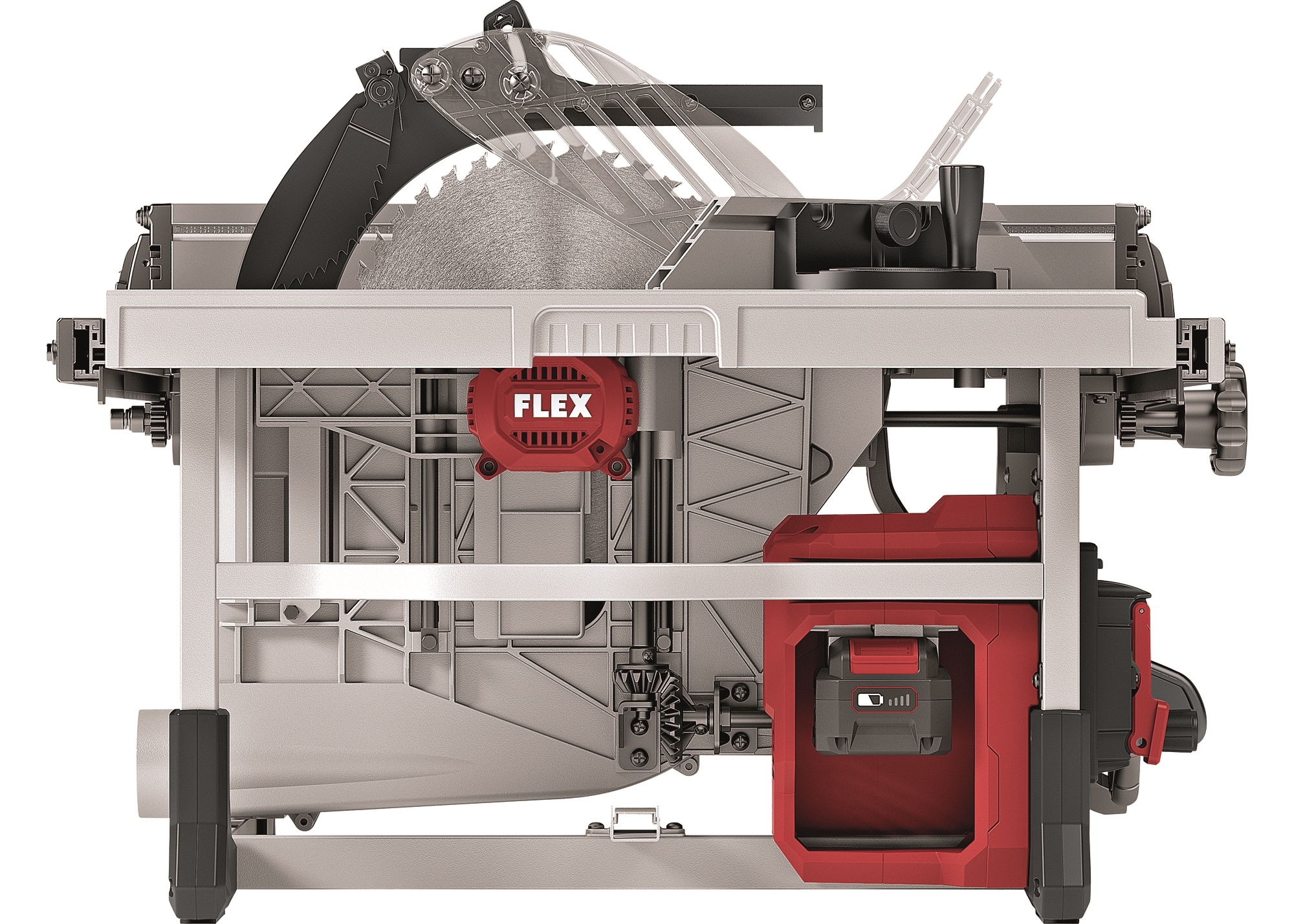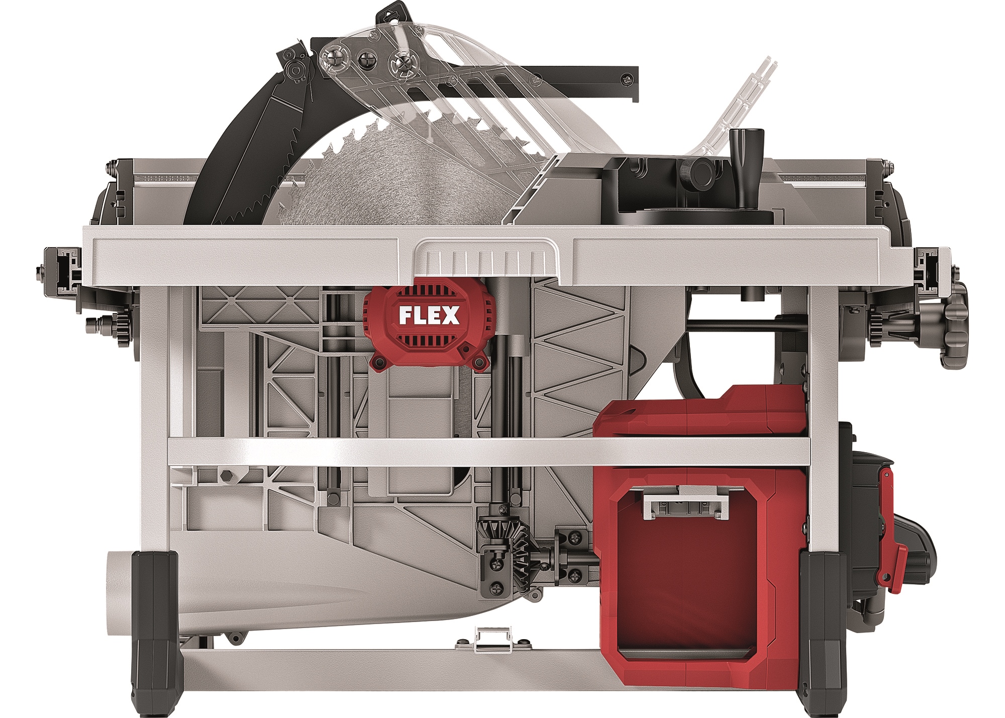 Sega da banco a batteria estremamente leggera per la massima mobilità in cantiere. Può essere fissato senza attrezzi al telaio di base pieghevole (disponibile opzionalmente come accessorio)