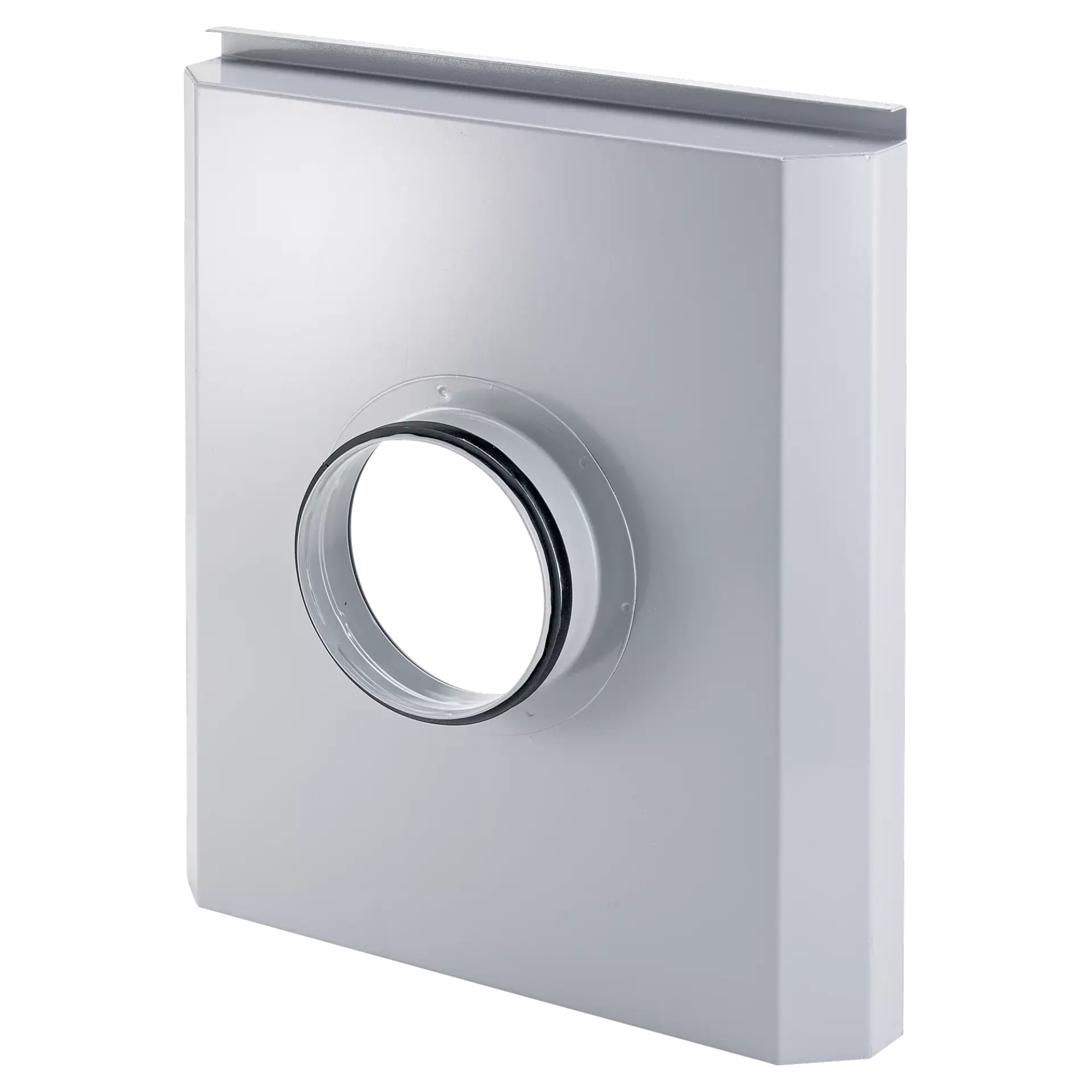 Adattatore di collegamento per tubo composto da una copertura metallica con raccordo per tubo e fascetta di serraggio Ø 125 mm. Per l'utilizzo del VAC 800-EC al di fuori dell'area di lavoro e per creare una depressione nella cabina.